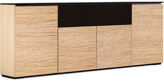 Deeply embossed, horizontal grains- akin to wheat, offer a rustic look. Features infinitely adjustable, black interior shelves, and Built-in ventilation louvers for better air flow to keep equipment cool.