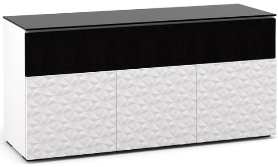 Finished in white, Milan is a sleek door design with a modern geometric three-dimensional, diamond pattern. Features infinitely adjustable, black interior shelves. Built-in ventilation louvers for better air flow keep equipment cool